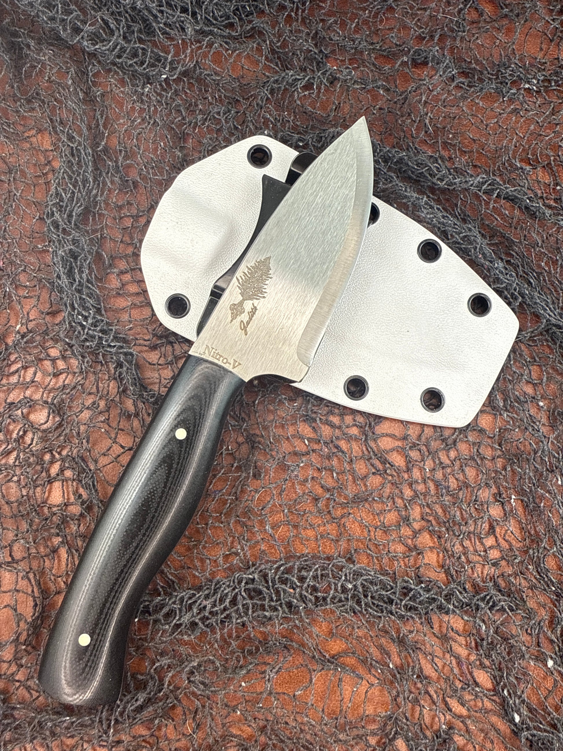Handmade from Nitro V stainless steel, this 8" blade packs serious cutting power into a compact design. With a 3.25" cutting edge, it’s built for precision, durability, and everyday reliability—whether you’re at camp, in the kitchen, or carrying daily.