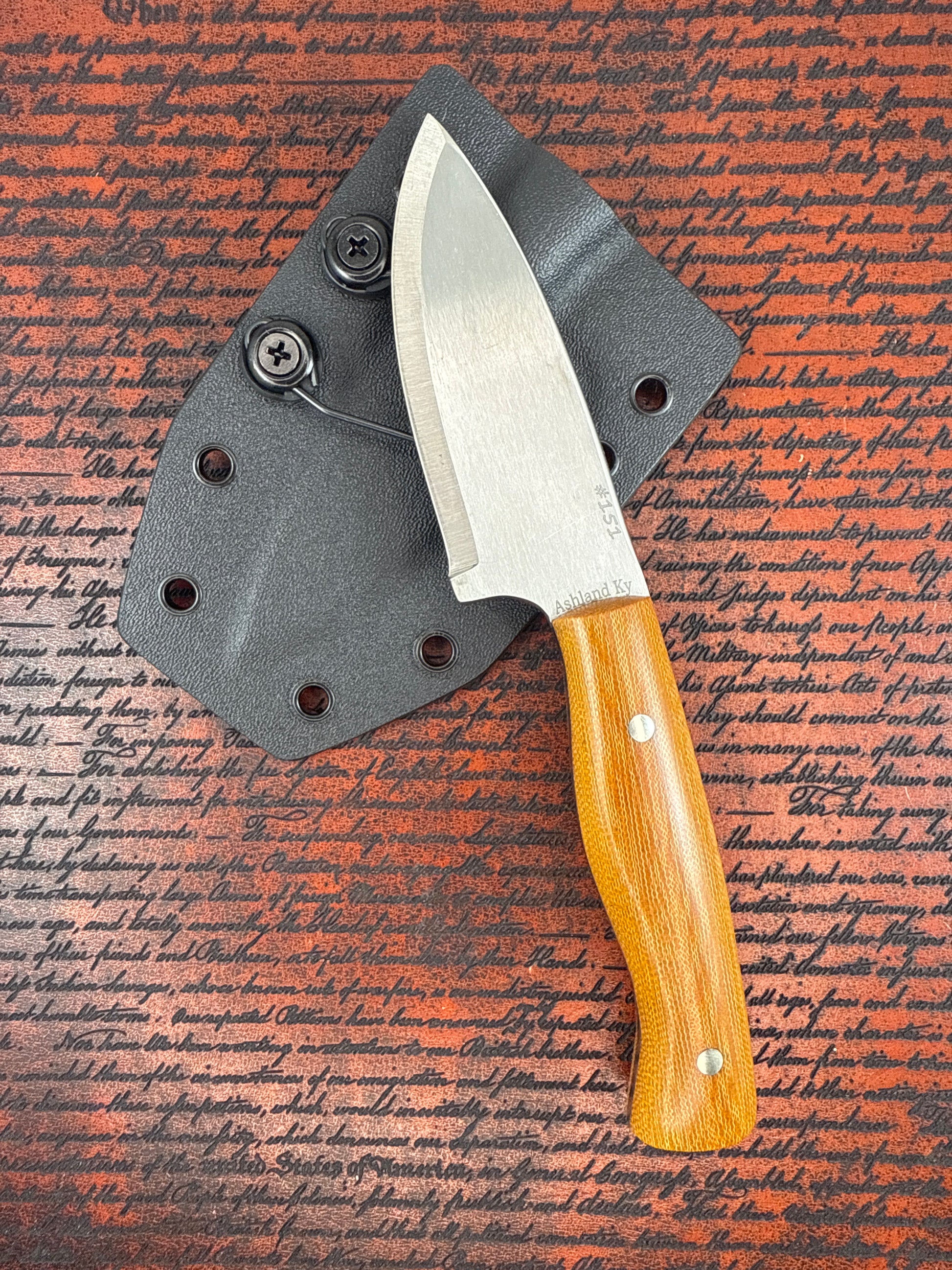 The sleek Noodle Micarta handle paired with bold Silver Nickel Corby bolts gives this knife a clean, modern contrast that feels as good in the hand as it looks. Lightweight yet rugged, it’s ready for the shop, the field, or wherever your day takes you.