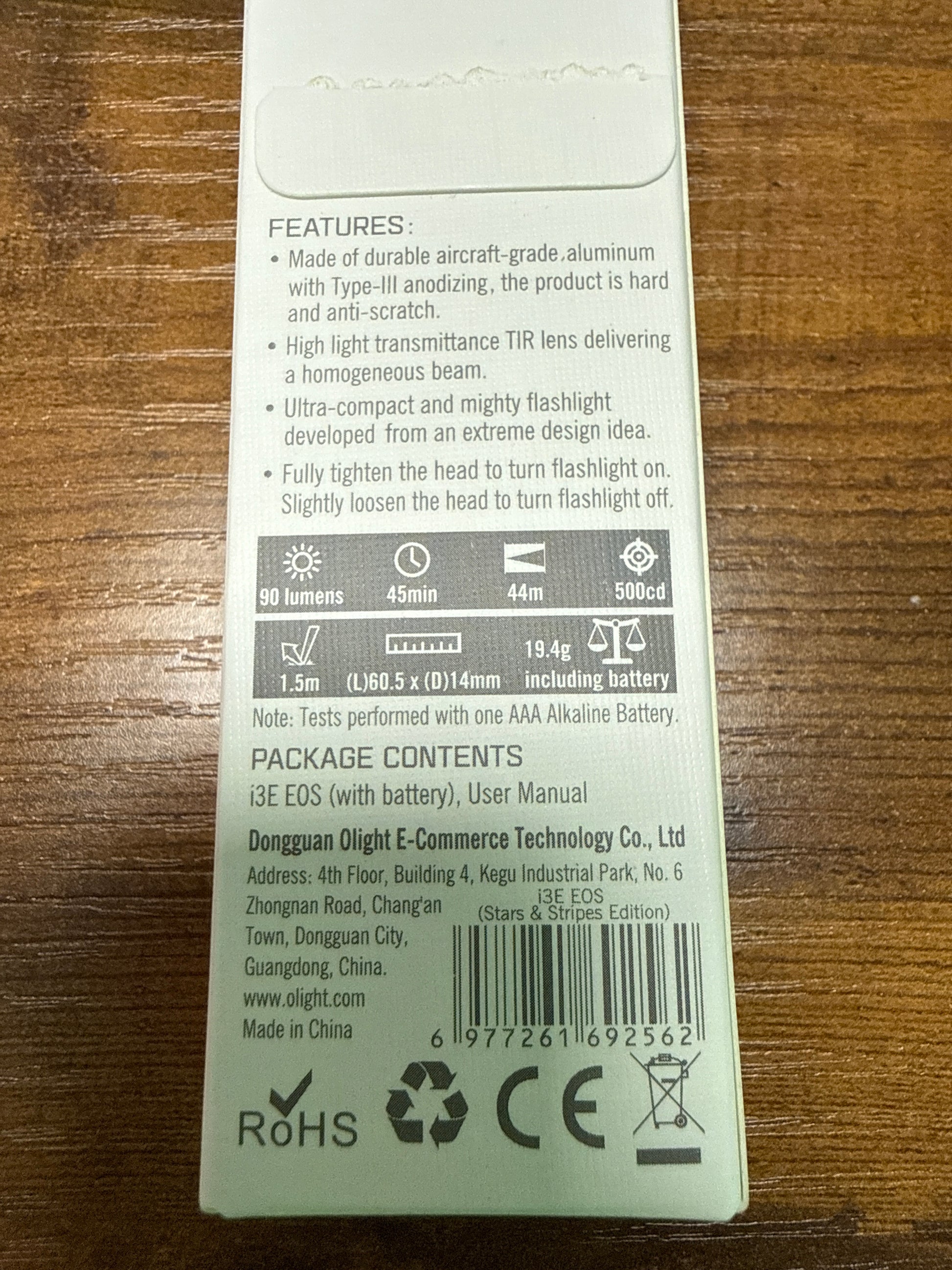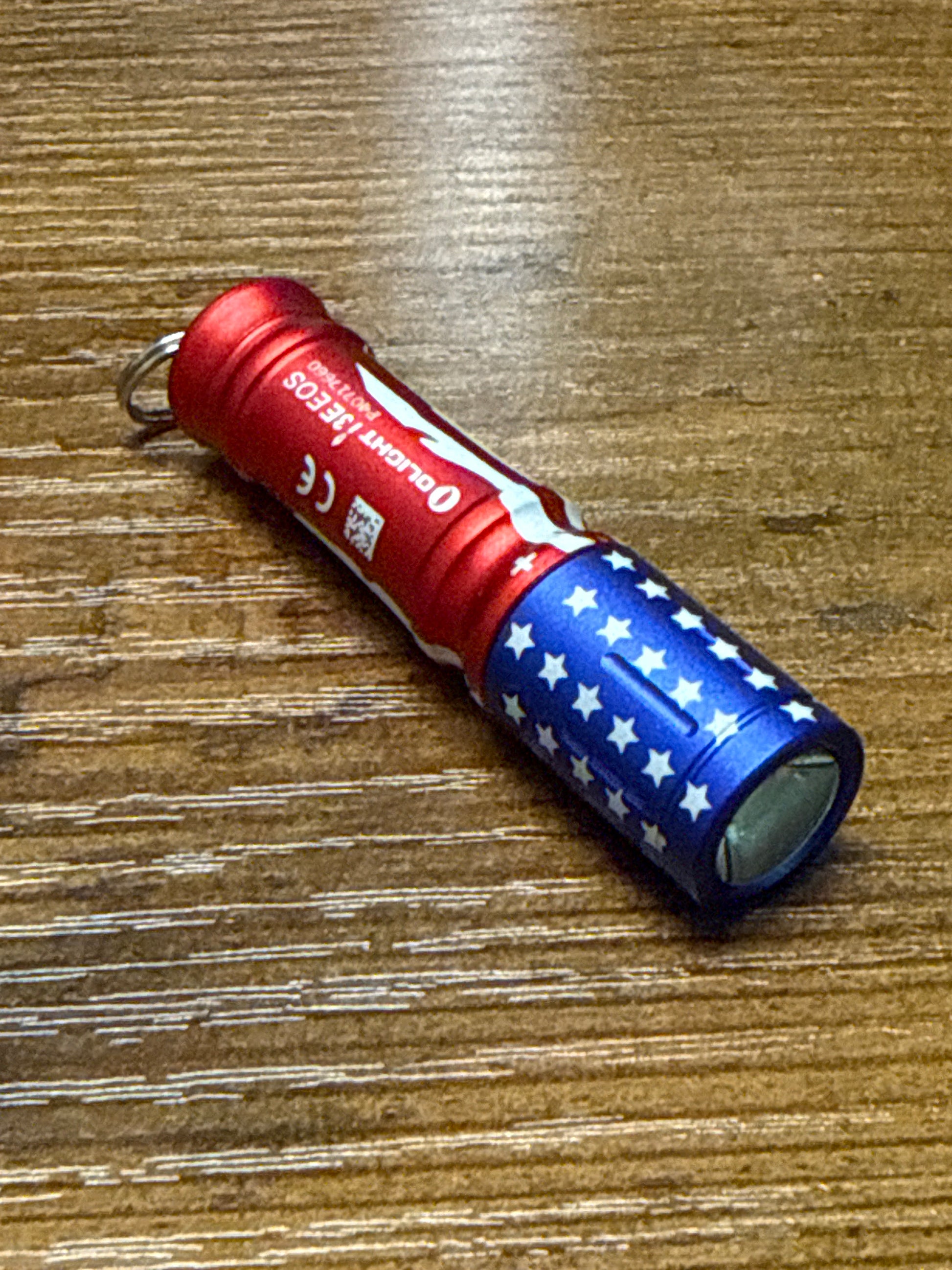 i3E EOS Keychain Flashlight red white and blue