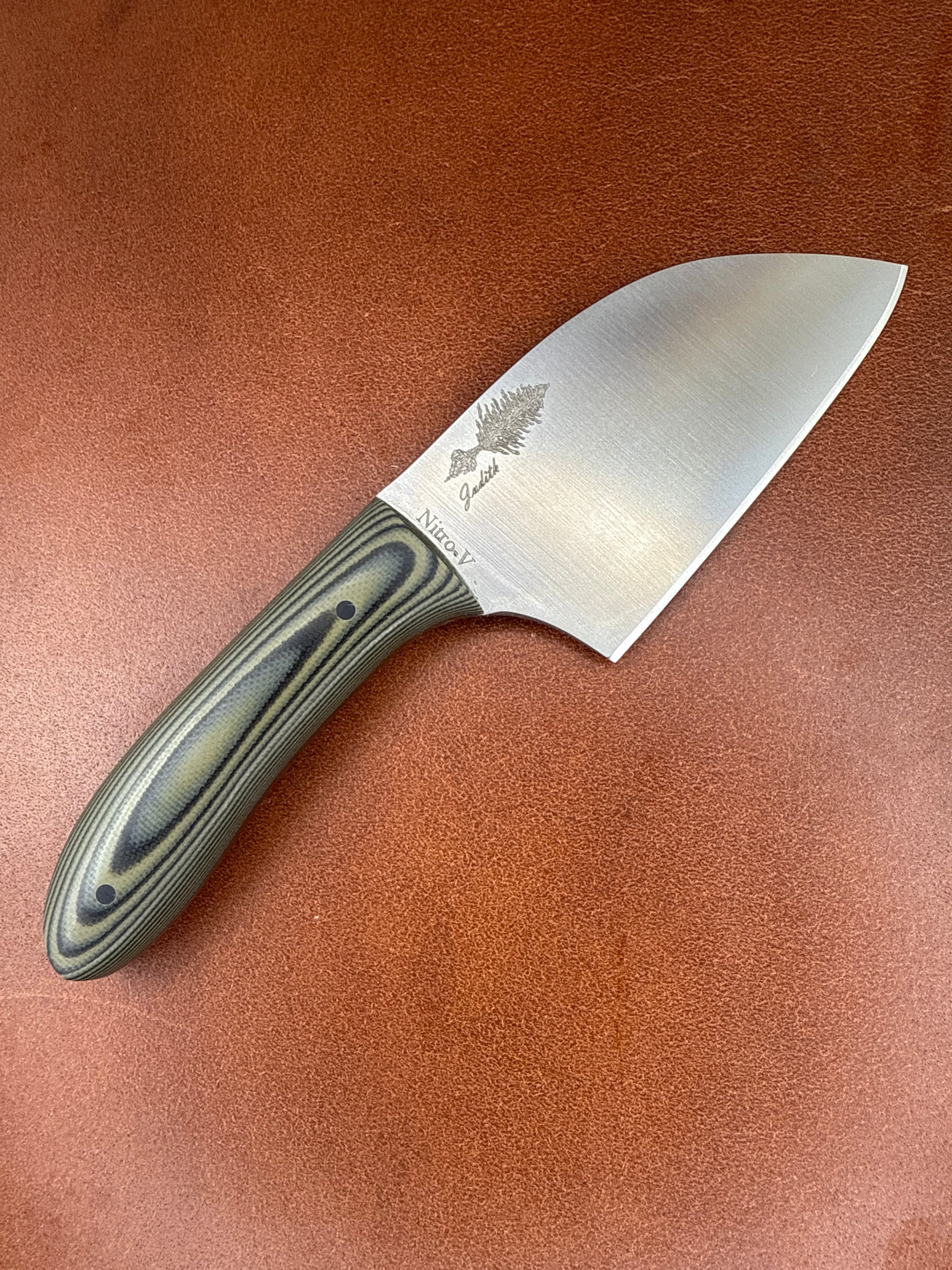 Finished with a bold Green and black G10 by VZ Grips handle and black g10 pins, the Little Sandy brings both durability and style to your cutting board.