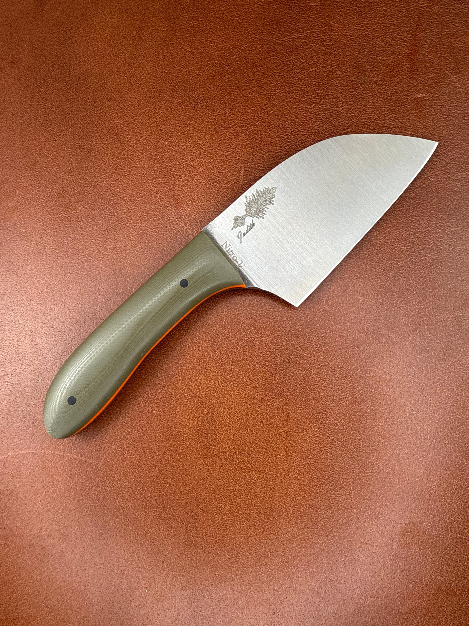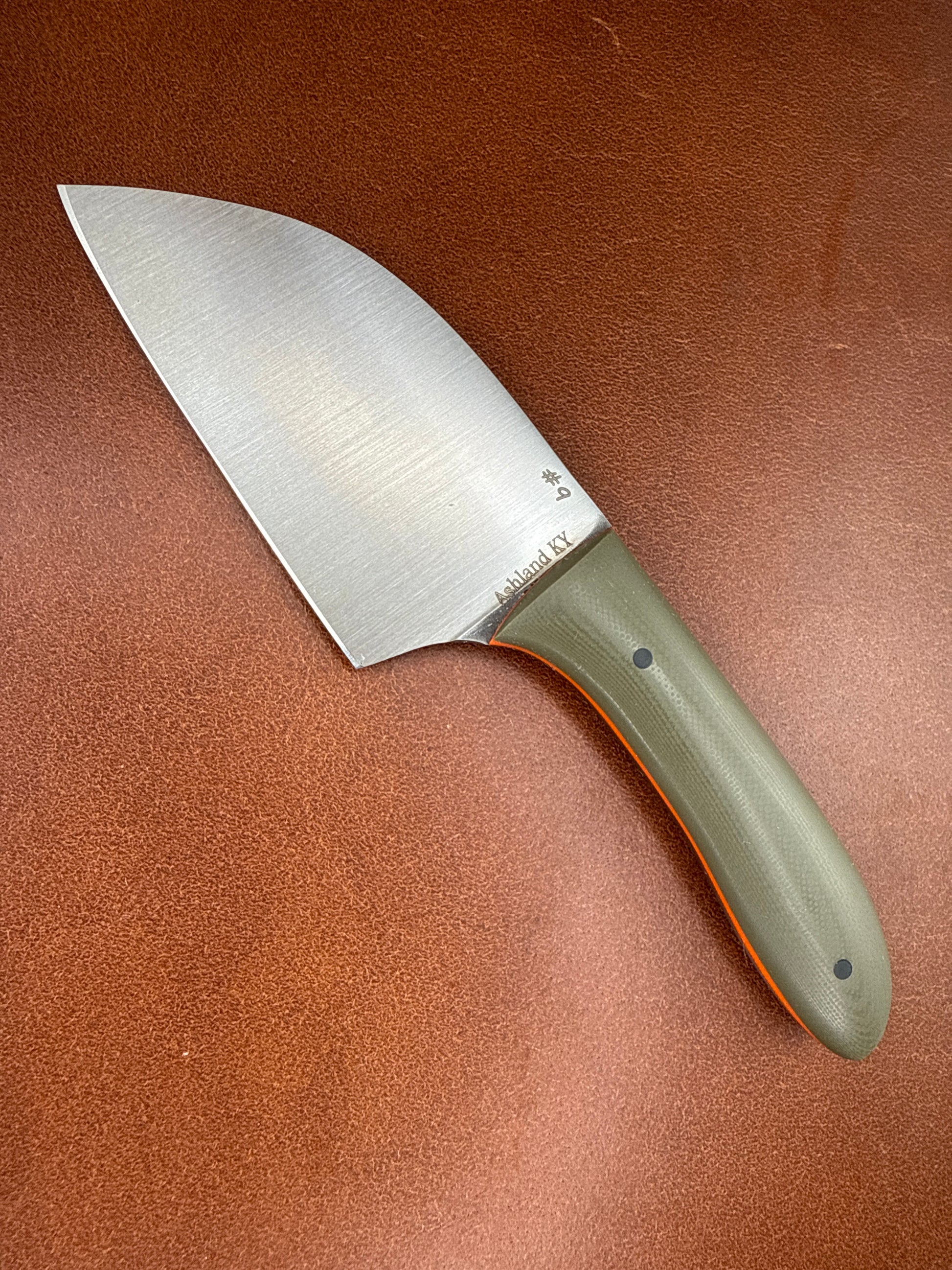 Finished with a bold Orange and Green g10 handle and black G10 pins, the Little Sandy brings both durability and style to your cutting board.