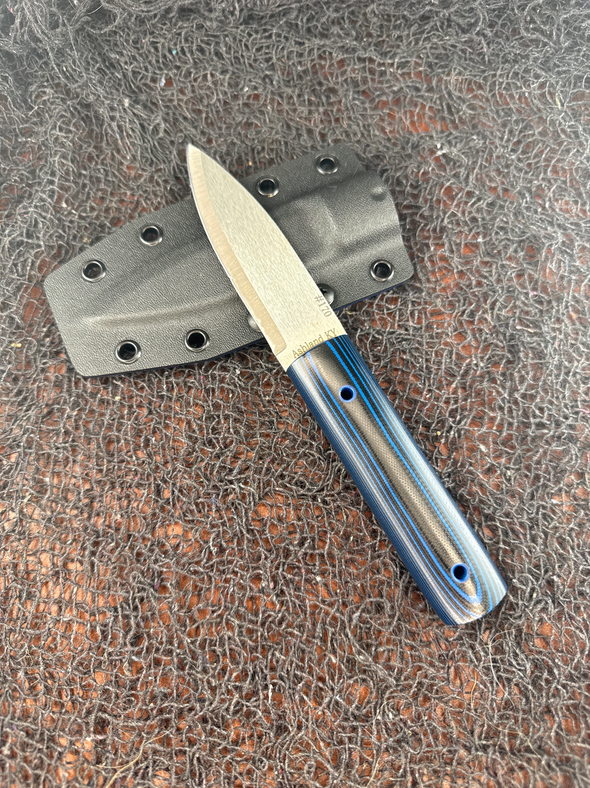 Handmade in Ashland, KY, the West Virginia is a bushcraft-inspired EDC built from Nitro V stainless steel for excellent edge retention and toughness. Featuring a 90-degree spine, perfect for ferro rod striking and outdoor use. It measures 8" overall with a 4" cutting edge and features a sleek Black and Blue G10 handle accented with bold Blue G10 lanyard tubes. Perfect for outdoor adventures, camp tasks, or everyday carry — and backed by Judith Knife Co.’s FREE lifetime resharpening guarantee.