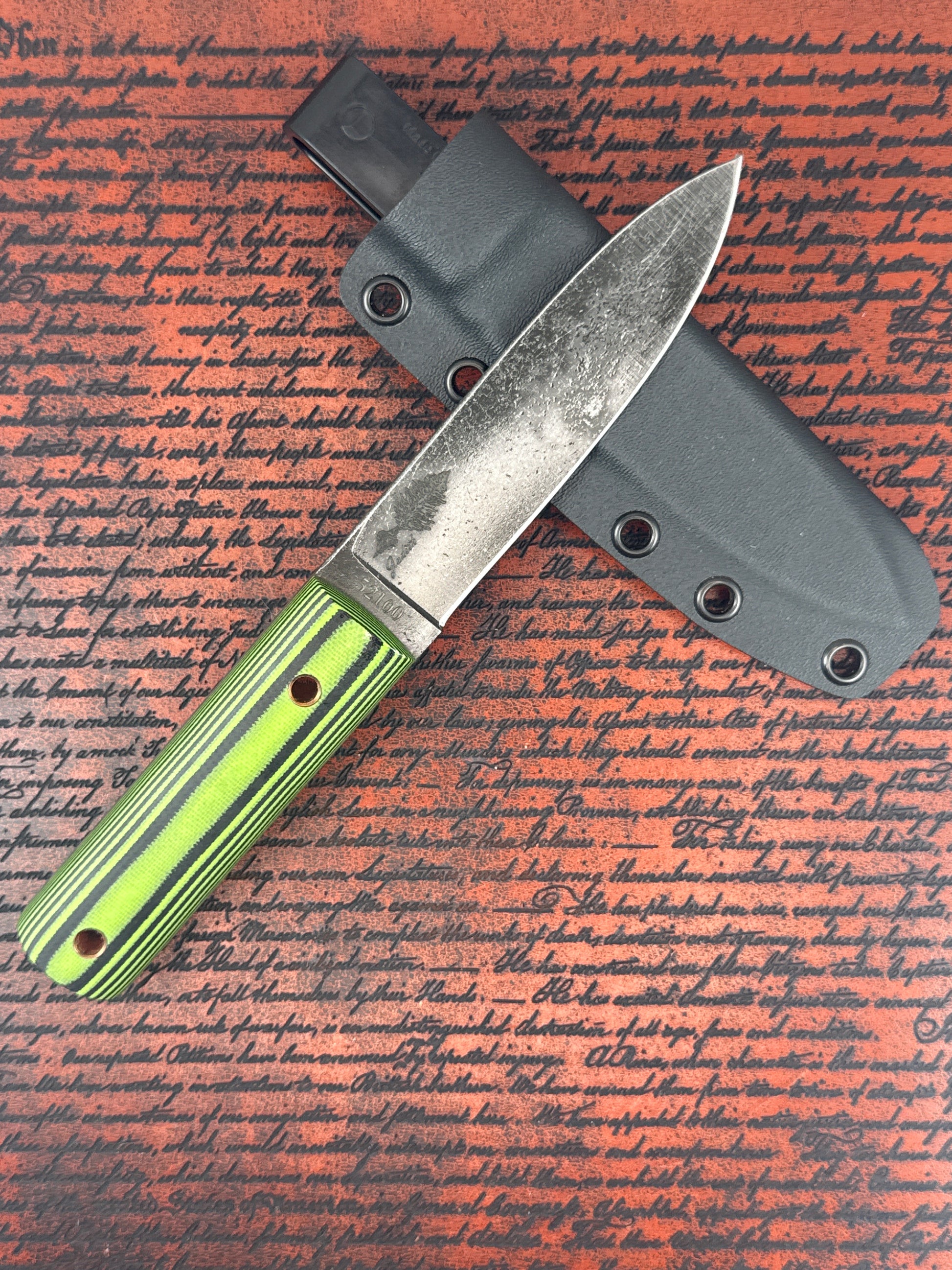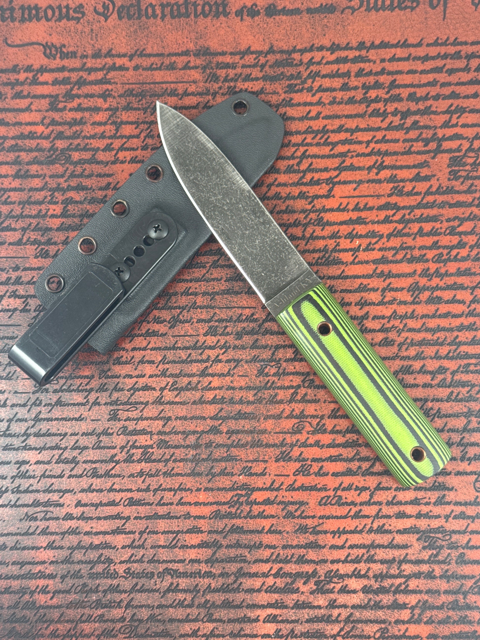 Handmade in Ashland, KY, the West Virginia is a bushcraft-inspired EDC built from 52100 Carbon Steel for excellent edge retention and toughness. It measures 8" overall with a 4" cutting edge and features a sleek green and black g10 handle accented with brass lanyard tubes. Perfect for outdoor adventures, camp tasks, or everyday carry — and backed by Judith Knife Co.’s FREE lifetime resharpening guarantee.